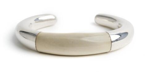 931/106LyngbyAnne Ammitzbøll: An open "Aura" bangle set with polished mammoth tooth, mounted in sterling silver. Design no. A.33B. Georg Jensen after 1945.