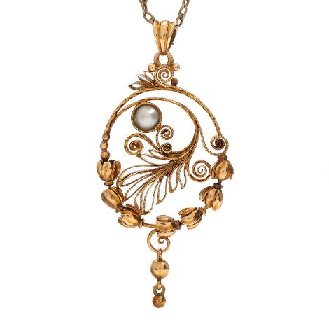 2550/1123AarhusGeorg Jensen: A pearl pendant set with pearl, mounted in 18k gold. Georg Jensen 1915-27. Accompanied by 8k gold chain.