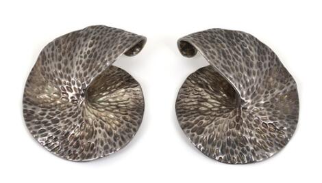 2551/1311AarhusNanna Ditzel: A pair of sterling silver earclips. Design 131. L. app. 3 cm. Georg Jensen after 1945.