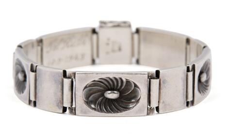 2551/1219LyngbyHenry Pilstrup: A sterling silver bracelet decorated with stylised flowers. Design no. 56 A. Georg Jensen 1933-44.