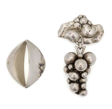 2551/1280LyngbyGeorg Jensen: A "Moonlight Grape" brooch and a pendant of sterling silver. Design no. 217B and 380B. (2)