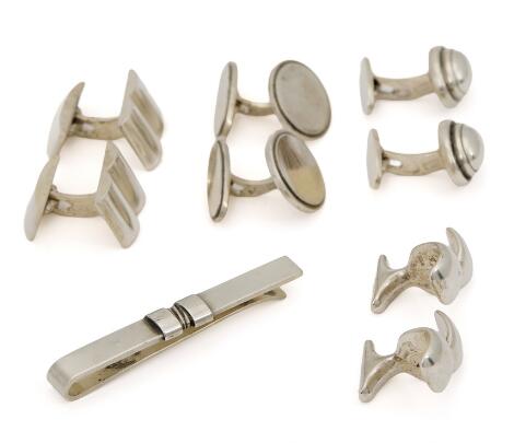 2551/1182LyngbyGeorg Jensen: A jewellery collection comprising of four pairs of cufflinks and a tie pin, mounted in sterling silver. (9)
