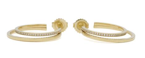 2551/1139LyngbySophie Bille Brahe: A pair of "Halo" diamond ear pendants, mounted in 18k gold. L. 24 mm. (2)