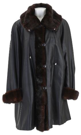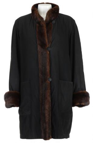 2548/1345LyngbyBirger Christensen: A jacket of black fabric and brown fur with button closures on the front and two pockets. L. app. 100 cm.