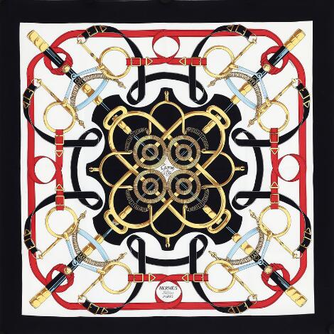 2548/1339LyngbyHermès: A silk scarf with motif "d'Eperon d'Or" by Henri d'Origny. App. 89 x 89 cm.