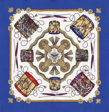2548/1335LyngbyHermès: A silk scarf with motif "Les Tambours" by Joachim Metz. App. 89 x 89 cm.