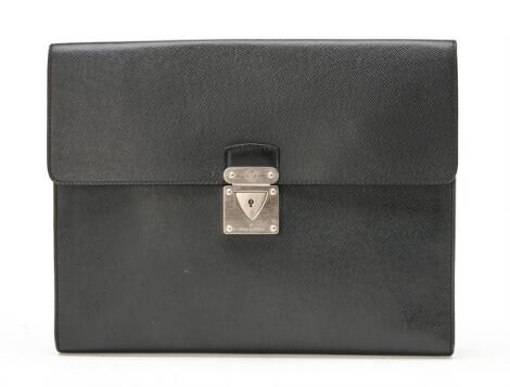 2548/1340LyngbyLouis Vuitton: A briefcase of black Taiga leather with silver tone hardware, one compartment and two interior pockets.