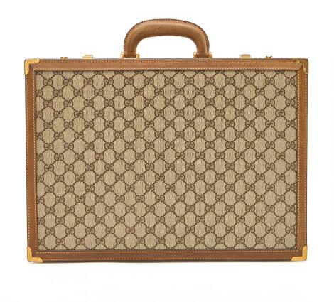 2548/1355LyngbyGucci: A briefcase of brown monogram canvas with brown leather trimmings and gold tone hardware.