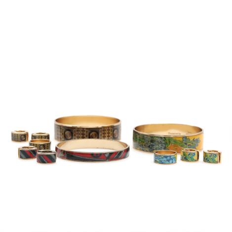 2548/1331AarhusErwin Pearl: A selection of 22k gold plated jewellery decorated with enamel a.o. (11)