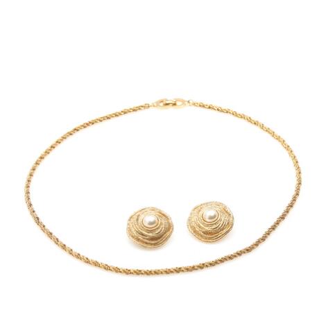 2548/1329AarhusChristian Dior: A jewellery set comprising a pair of earclips and a necklace of gold coloured metal. (3)