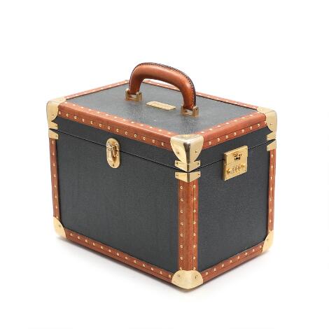 2548/1351AarhusEscada: A dark brown and cognac-coloured leather beauty box. H. 26.5 x L. 33.5 x D. 22.5 cm.