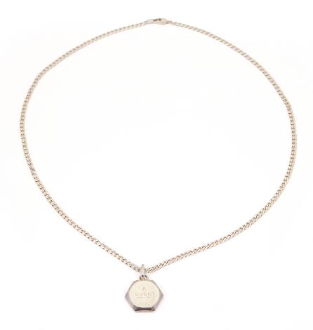 2548/1328LyngbyGucci: A necklace set with a round pendant, mounted in silver. Weight app. 32 g. L. 59 cm. (2)