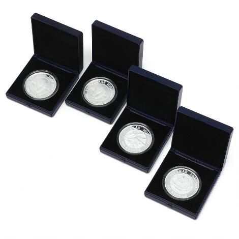 2549/5188Polarmønter, 100 kr 2007–2009, Isbjørn (2 stk.), Sirius og Nordlys, Sieg 1A-3A, i alt 4 stk. i Ag i originale æsker fra Den Kgl. Mønt