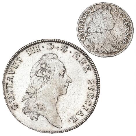 Sweden, Karl XI, Mark 1688, SM 173, schratches; Gustav III, Riksdaler 1780, SM 46, in total 2 pcs