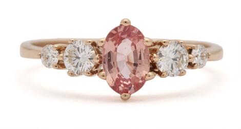 2545/1157Safir- og diamantring af 18 kt. rosaguld prydet med padparadscha safir og diamanter. Str. 52.