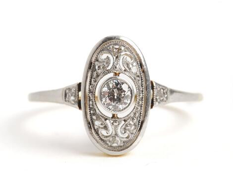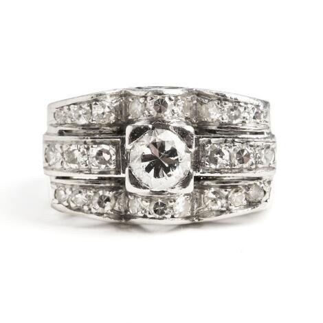 2545/1141Art Deco diamantring af 14 kt. guld og platin prydet med brillant- og rosenslebne diamanter. B. 12,5 mm. Str. 54,5.