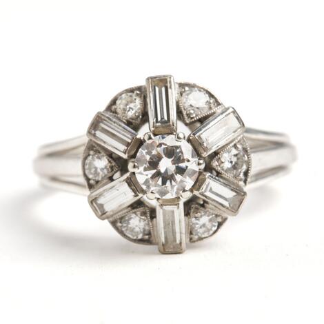 2545/1139Diamantring af 14 kt. hvidguld prydet med talrige baguette- og brillantslebne diamanter. Vægt ca. 3 g. Str. 54.