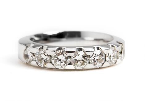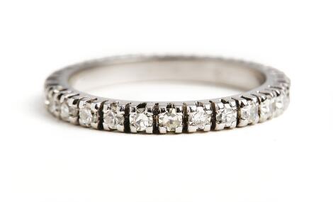 2545/1146Diamant alliancering af 14 kt. hvidguld prydet med talrige enkeltslebne diamanter. B. 2,4 mm. Str. 53,5.