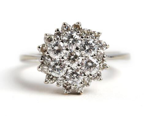 2545/1104Bræmer-Jensen: Diamantring af 14 kt. hvidguld prydet med diamanter på i alt ca. 1.40 ct. F-G/VVS. Str. 53.