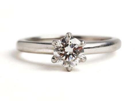 2545/1103Diamant solitairering af platin prydet med brillantslebet diamant på ca. 0.70 ct. Farve: F. Klarhed: VS1. Str. 53.
