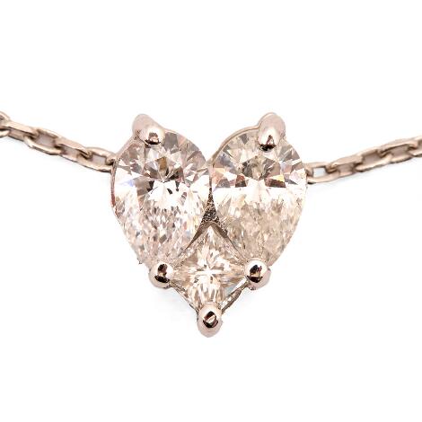 Halskæde af 18 kt. hvidguld prydet med diamantvedhæng i form af hjerte. L. 41-43 cm.