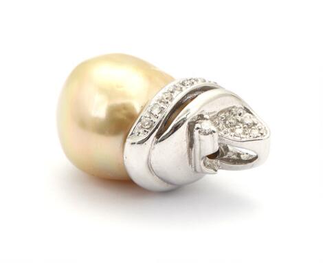 Perle- og diamantvedhæng af 14 kt. guld og hvidguld prydet med Tahiti kulturperle og diamant. L. 28 mm.