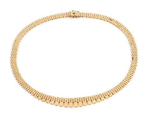 Murstenshalskæde i forløb af 14 kt. guld. Vægt ca 38 g. B. 7-12 mm. L. 42,5 cm.