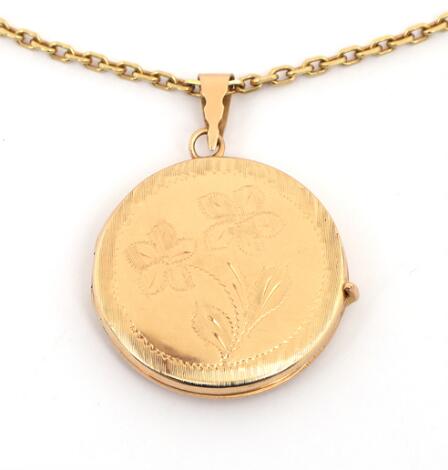 Vedhæng af 14 kt. guld i form af fotogemme. Samt halskæde af 14 kt. guld. Samlet vægt ca. 17,5 g. Kæde L. 60 cm.