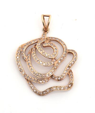 Diamantvedhæng af 8 kt. rosaguld prydet med talrige enkeltslebne diamanter. L. inkl. øsken 4,4 cm.