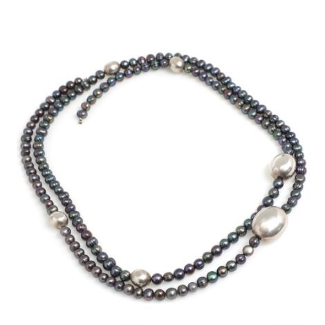 Perlehalskæde prydet med talrige Tahiti perler og lås af 18 kt. hvidguld. Perlediam. ca. 10 mm. L. 38 cm.