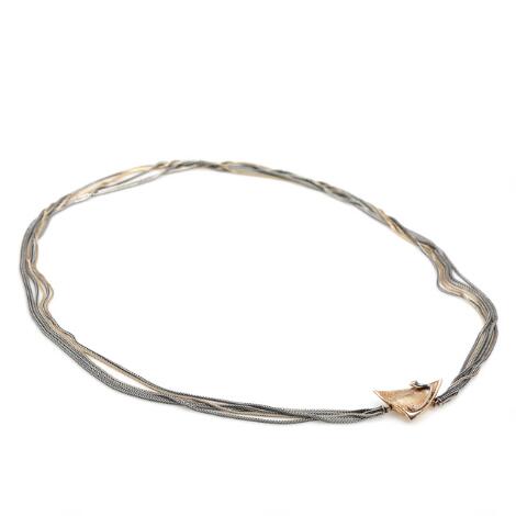 Anette Kræn: Halskæde af oxyderet sterlingsølv med guld. L. ca. 88 cm.