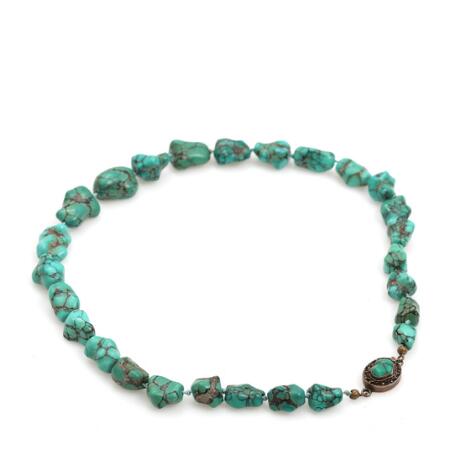 Turkishalskæde prydet med talrige polerede turkis. L. 48 cm.