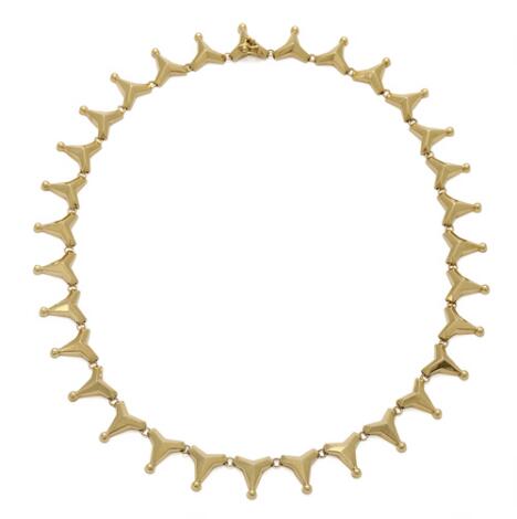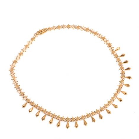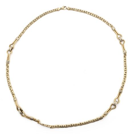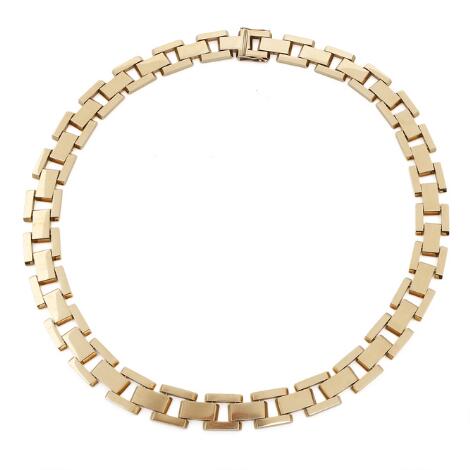 Leddelt halskæde af 18 kt. guld. Vægt ca. 23 g. B. 14 mm. L. 43,5 cm.