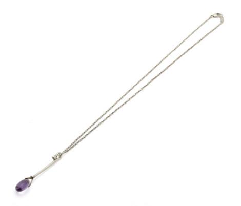 Georg Jensen: Halskæde af sterlingsølv prydet med ametyst vedhæng. Samlet vægt ca. 5 g. L. 42 cm.