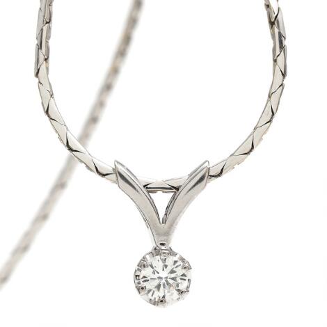 Tiffany & Co.: Halskæde af platin prydet med solitaire diamantvedhæng. Vægt ca. 2 g. L. 40 cm.