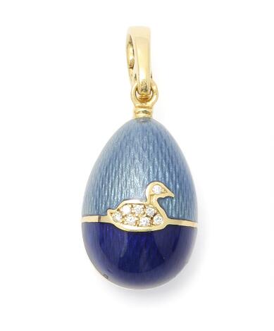 Victor Mayer: Fabergé emalje- og diamantvedhæng af 18 kt. guld. Kæde af 18 kt. guld medfølger. (2)