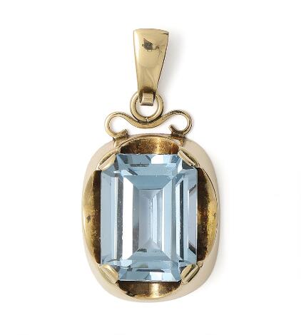 Spinelvedhæng 14 kt. guld prydet med smaragdslebet syntetisk spinel. Vægt ca. 9 g. L. 4,3 cm. B. 2,2 cm.