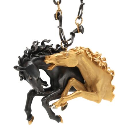 Cartier: “Silverium Panthère” vedhæng af 18 kt. guld og silverium i form af hængende panter. L. ca. 5,5 cm.
