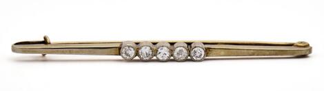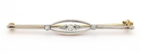 2548/1199LyngbyDiamantbroche af 14 kt. guld og hvidguld prydet med brillantslebne diamanter. Vægt ca. 2,5 g. L. 5,5 cm.