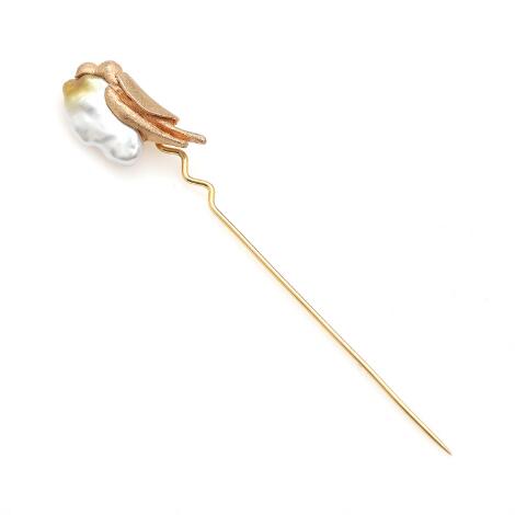 2548/1258AarhusJohan Torp: Perlenål af 18 kt. guld prydet med barok perle. L. 8 cm.