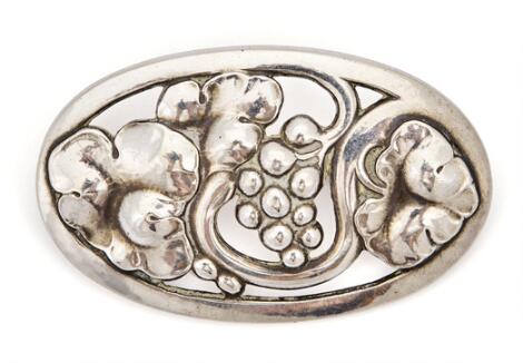 2548/1147LyngbyGeorg Jensen: Broche af sterlingsølv. Dessin 177B. Vægt ca. 14 g. B. 3,4 cm. L. 5,4 cm.