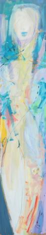 Inge Hørup: Composition with a woman. Signed Inge Hørup 89. Oil on masonite. 122 x 24.5 cm.