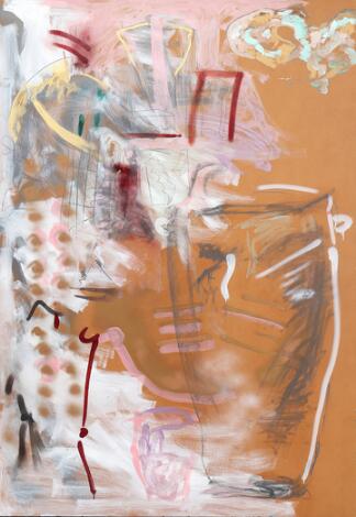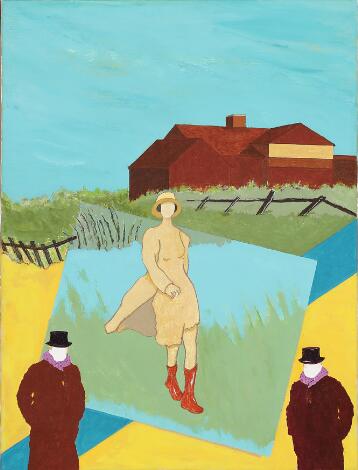 Henrik Have: Untitled. Signed Have. Oil and spray paint on masonite. 176 x 120 cm.