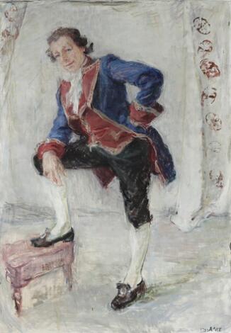 Anne Marie Telmányi: Portrait by Einar Nørby as actor. Signed AMT 1954. Oil on canvas. 150 x 100 cm.