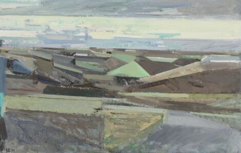 Svend Engelund: Landscape with fields. Signed SE. Oil on canvas. 74 x 115 cm.