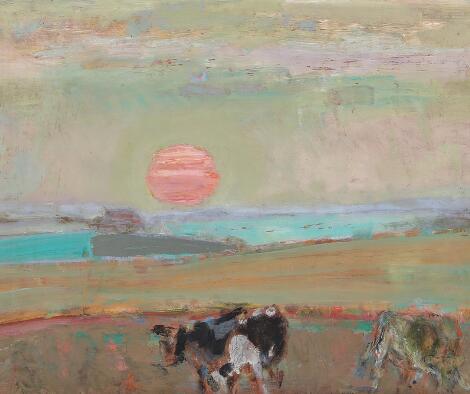 Petri Gissel: Sunset over the fields. Signed P. Gissel 57. Oil on board. 44 x 58 cm.