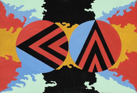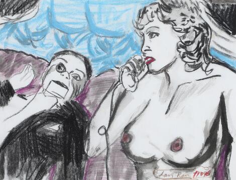 Arthur Secunda: Untitled. Unsigned. Oil and collage on paper. Sheet size 59 x 74 cm.