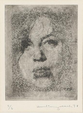 Portrait. Signed Trampedach 78, 4/5. Etching. Visible size 14 x 11 cm.