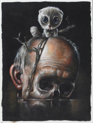 Hans Henrik Fischer: "The Survivor 2". 2013-2014. Signed. Oil on paper. Sheet size 40 x 30 cm.