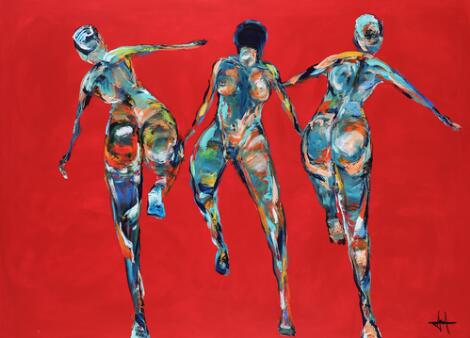 Lucija Grljusic (Gigel): "Message of Celebration". Signeret Gigel. Olie på PVC-plader. 98 x 115 cm.